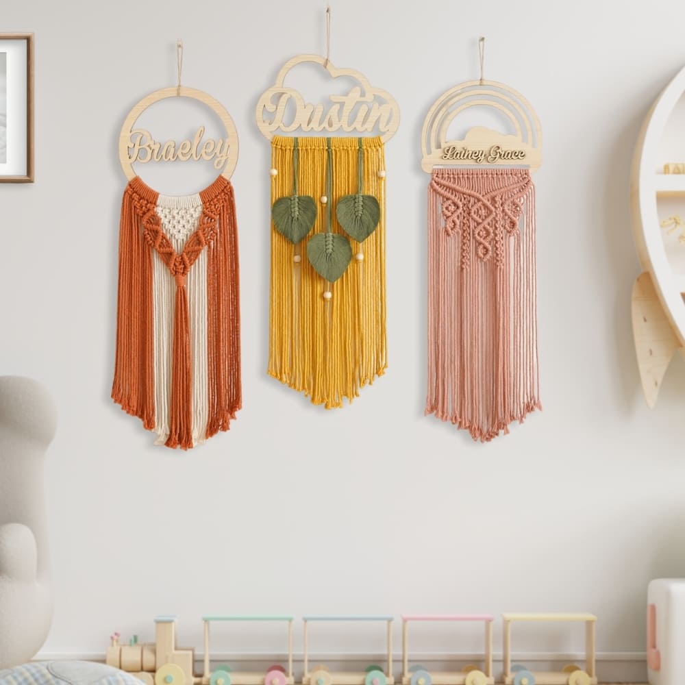 Macrame Boho Name Sign, Personalized Dream Catcher, Minimalist Baby Name Sign, Macrame Wall Hanging, Nursery Decor, Baby Gift For Mom