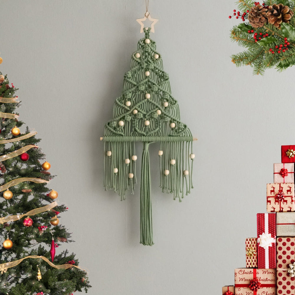 Christmas Tree Macrame Wall Hanging, Xmas Decor, Boho Xmas Tree Decor, Christmas Wall Art, Holiday Wall Decor, Christmas Mantel Decor