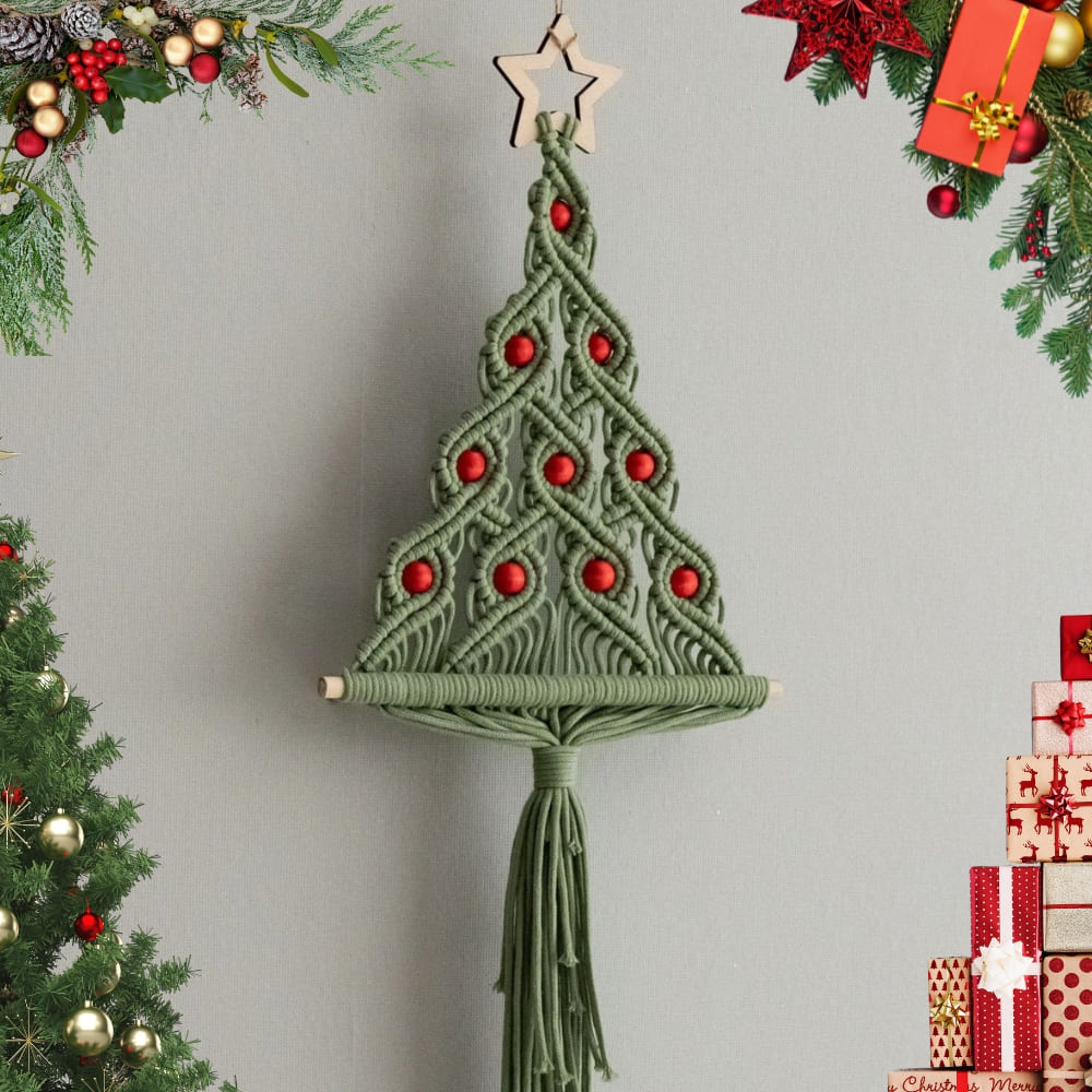 Bring some holiday cheer into your home with our Macrame Christmas Wall Hanging. This charming piece, featuring a unique Christmas tree design, perfectly combines Boho chic with retro flair, making it a wonderful addition to your Christmas mantel or nursery wall. It also makes a fantastic Boho holiday gift or a lovely piece of Macrame home decor to brighten any festive setting.