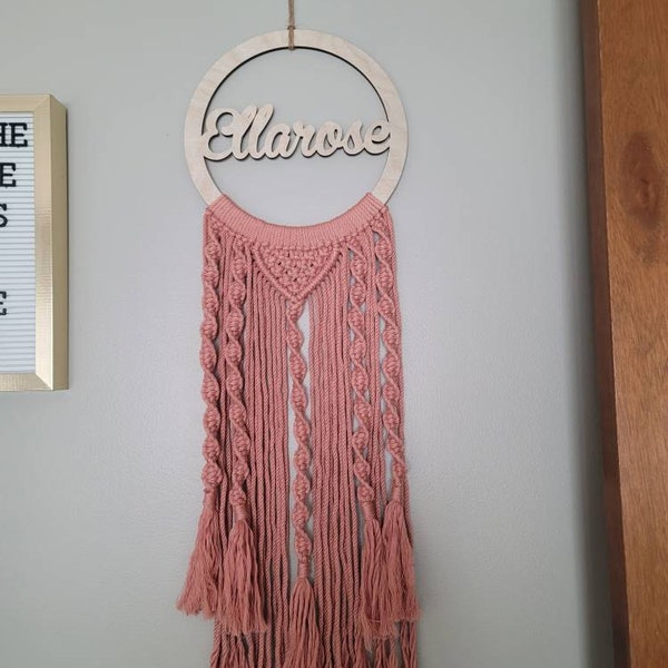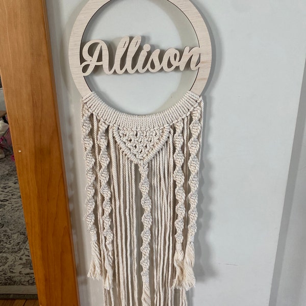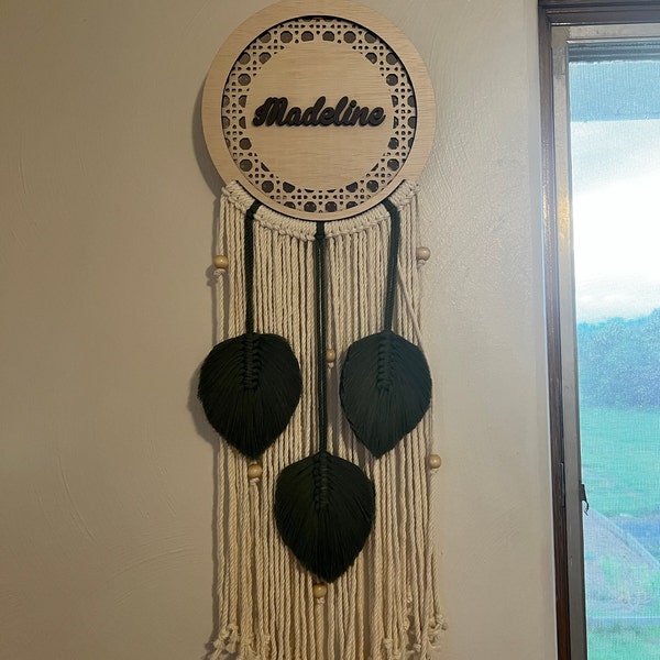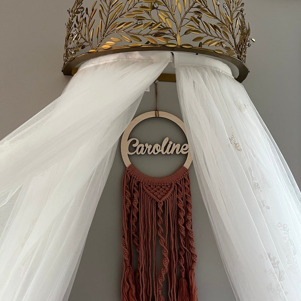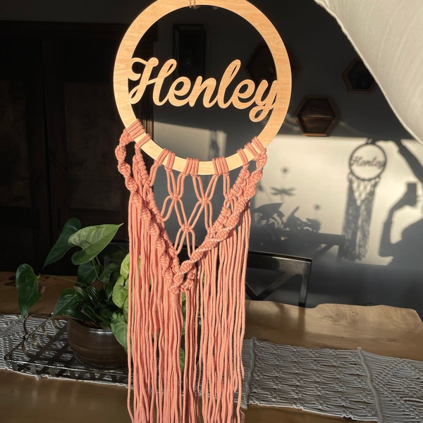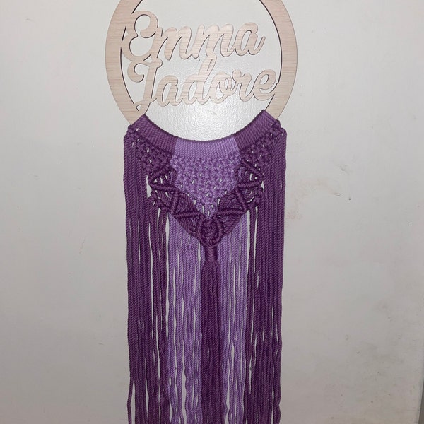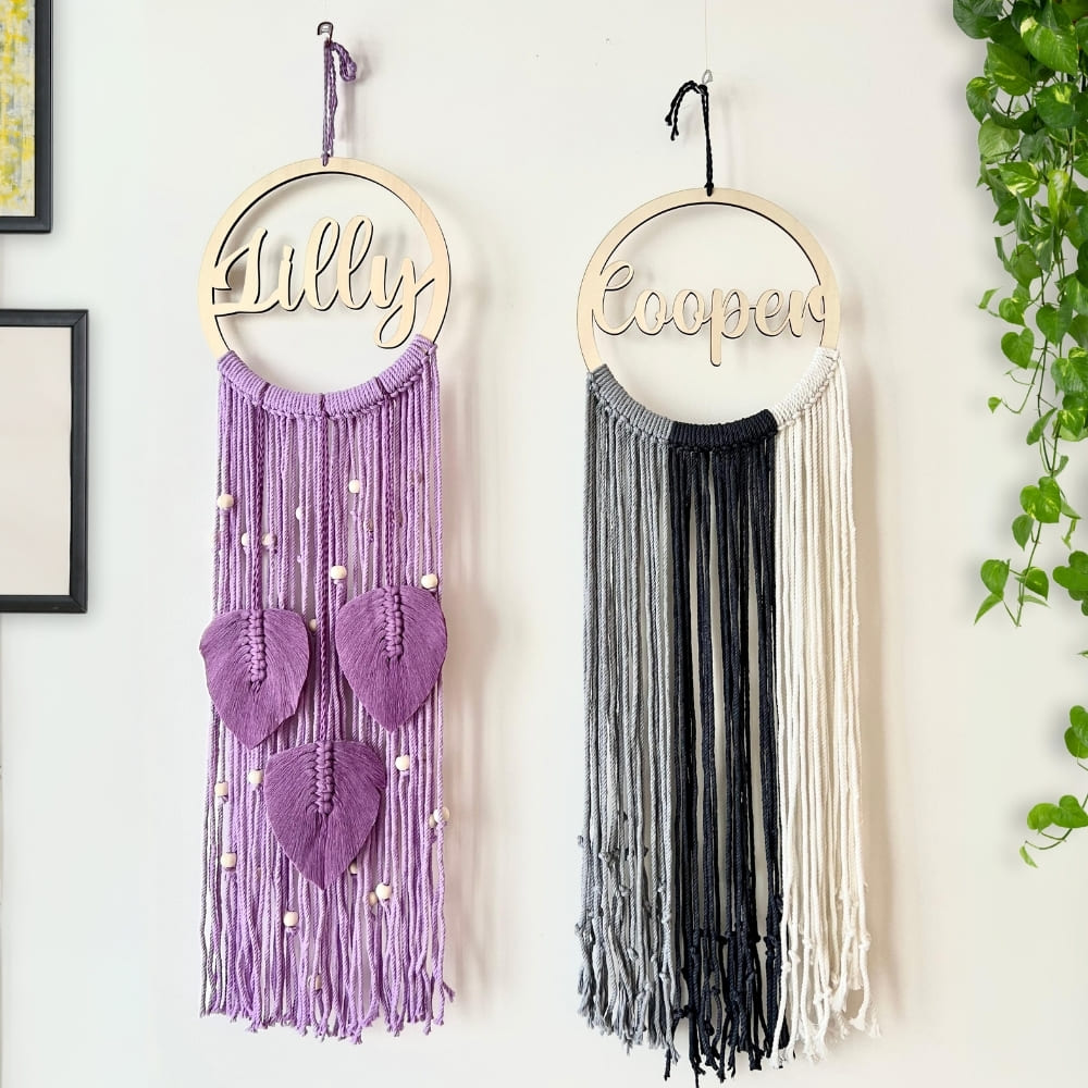Handcrafted with care, these Macrame Name Signs add a charming boho vibe to any room. The name sign or dreamcatcher can be customized, making it an ideal gift for loved ones or children.