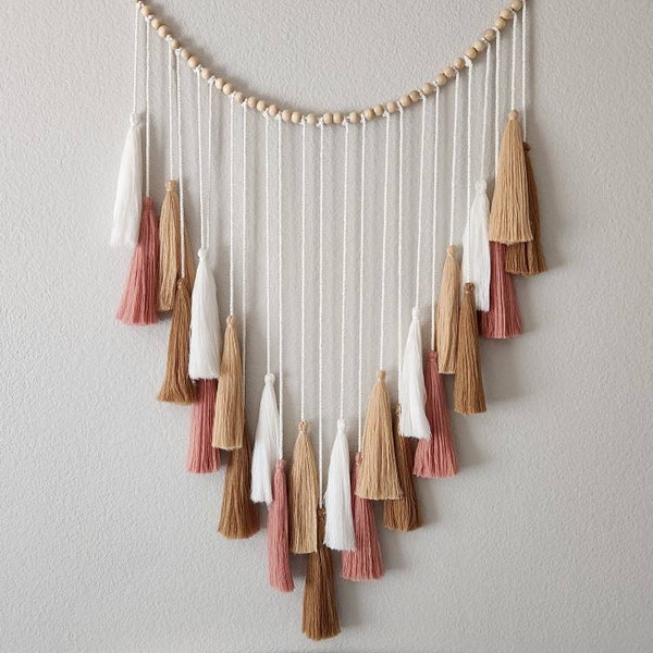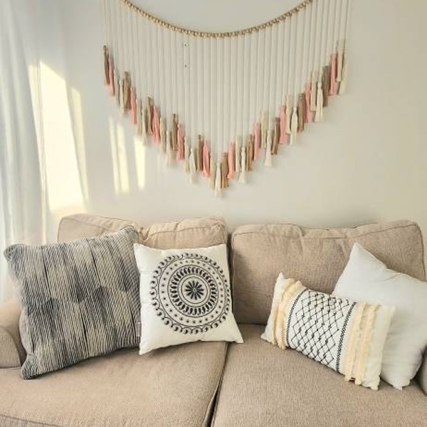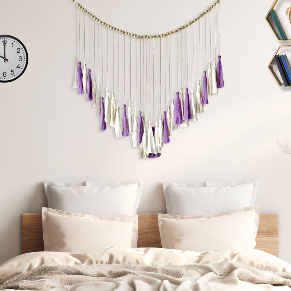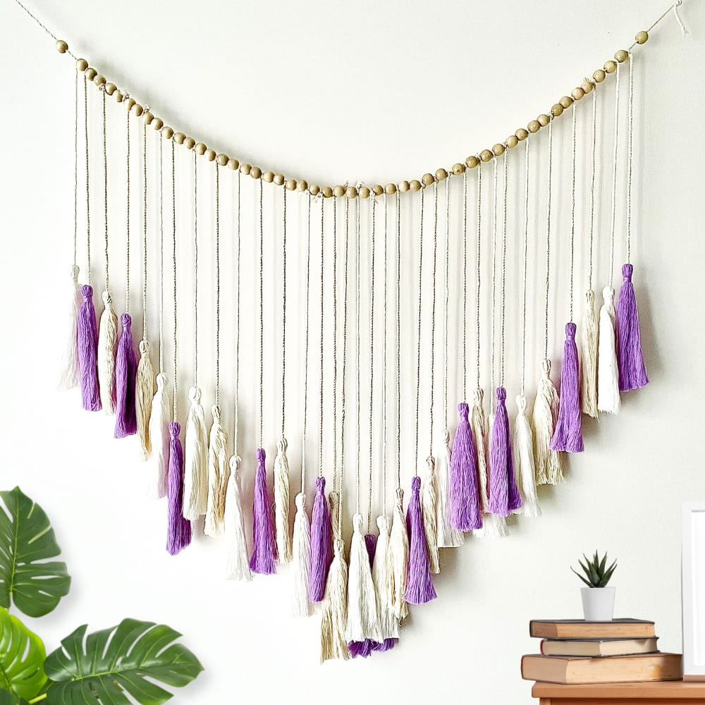This macrame tassel decoration is an ideal complement for any boho-themed room. Perfect for adding flair to a playroom, kids’ room, or bedroom, this macrame tapestry enhances the space with texture and style. Additionally, the boho tassel garland offers a stylish texture, and the macrame headboard serves as a contemporary wall decor piece. It also makes a charming addition to boho wedding decor.