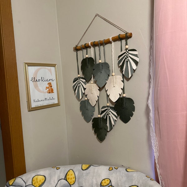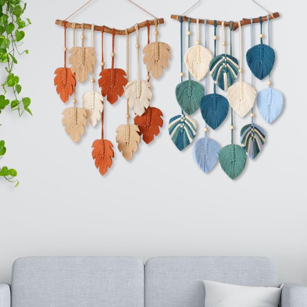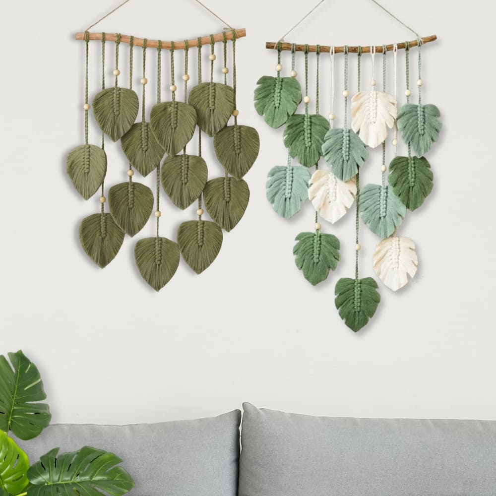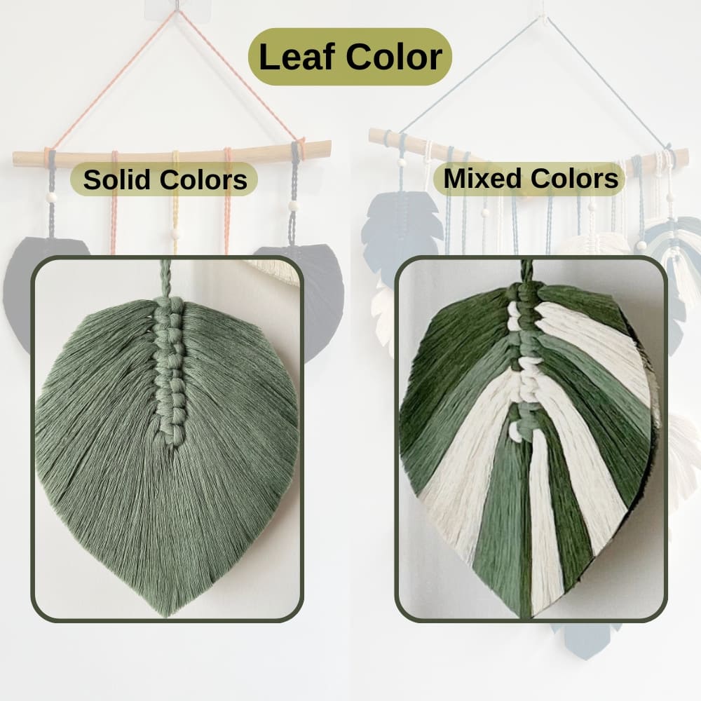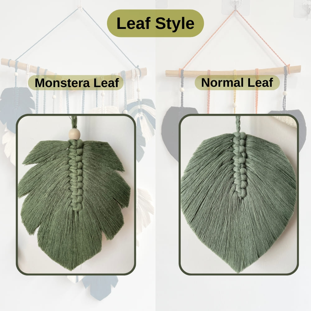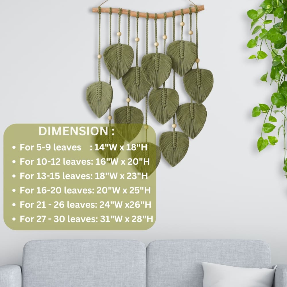 Each Green Leaves Macrame Wall Hanging is carefully handwoven, with dimensions based on the number of leaves: