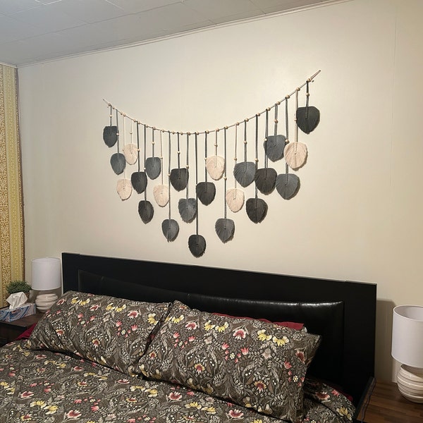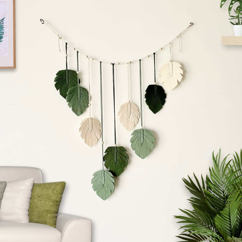 This exquisite Handmade Macrame Leaf Garland is a stunning work of art, ideal for enhancing your bedroom wall decor, boho or Scandinavian style home decor, or any space in your home. It also makes a thoughtful gift for a new homeowner, a best friend, or for housewarming.