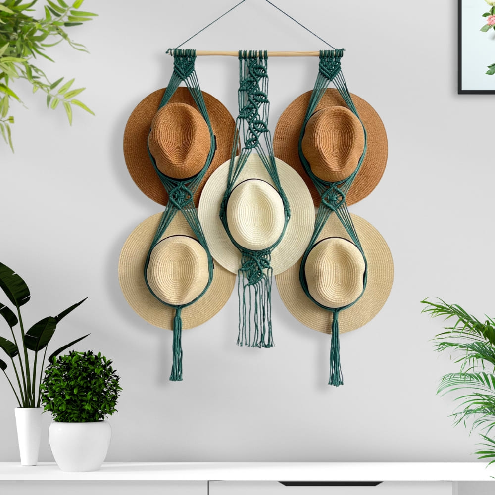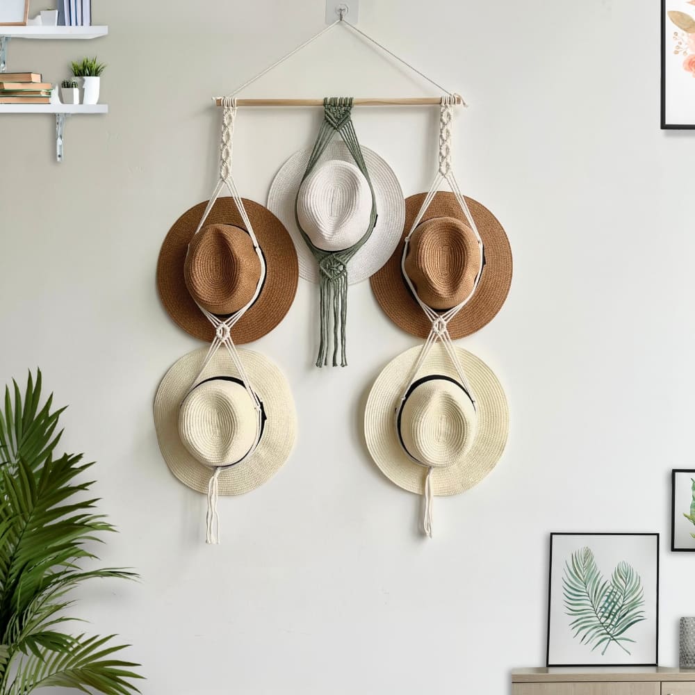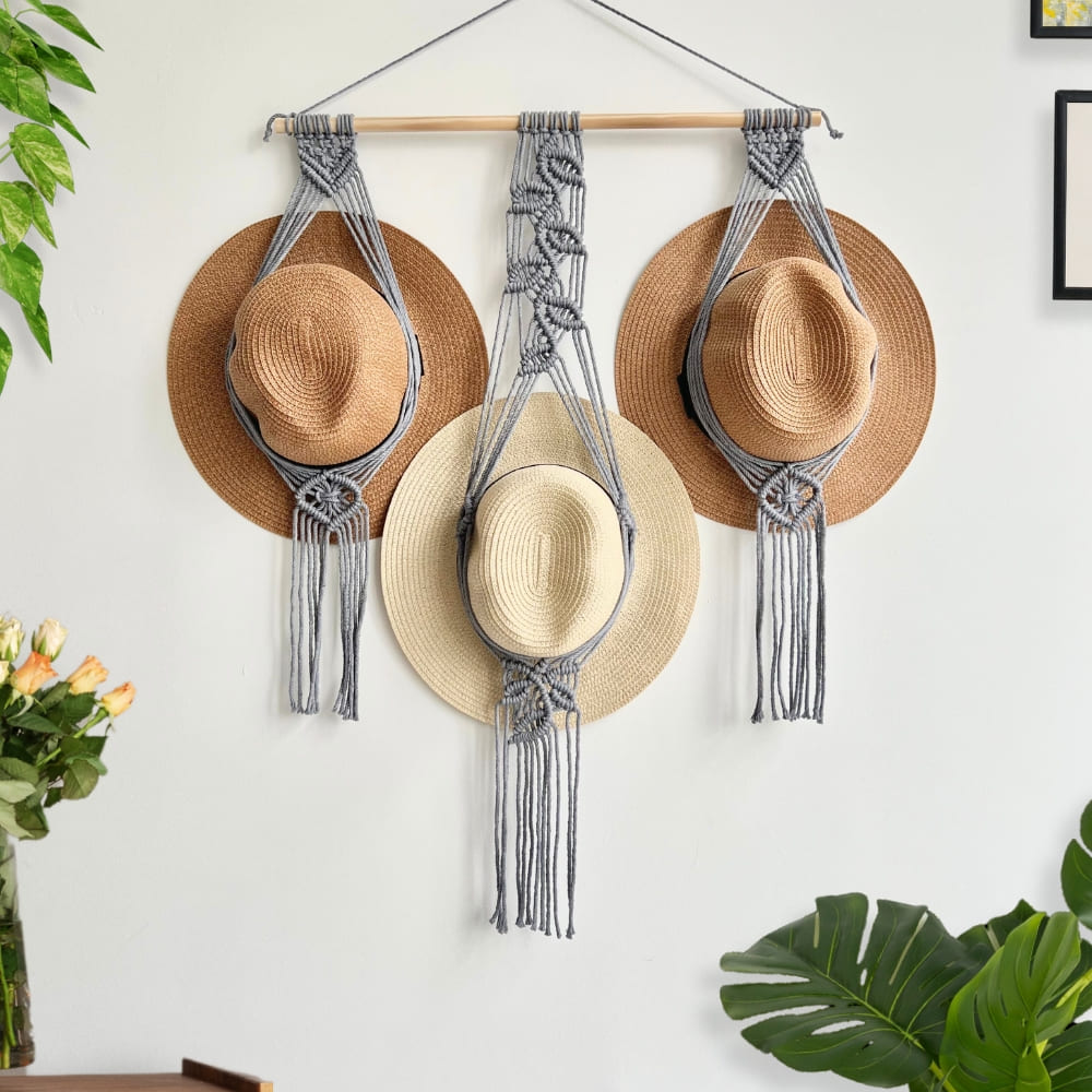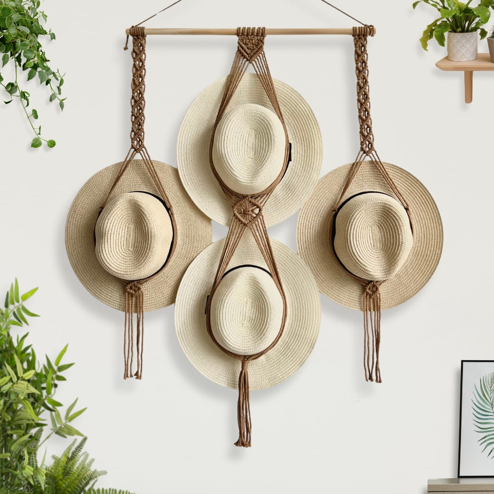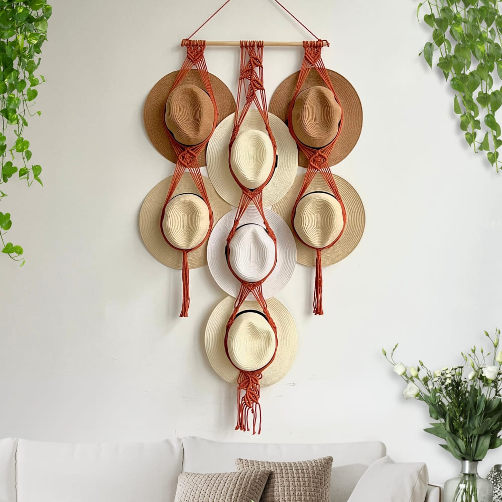 Organize and display your hats in style with our Boho Hat Holder! This Macrame Hat Holder is perfect for fans of Boho Farmhouse Decor and modern home accents. It’s an ideal gift for a mom’s birthday or any occasion to show someone you care. With its unique design, it also serves as a beautiful wall decoration that adds an elegant touch to your living room. Our Macrame Hat Hangers keep your hats in place and make them easy to find when needed.