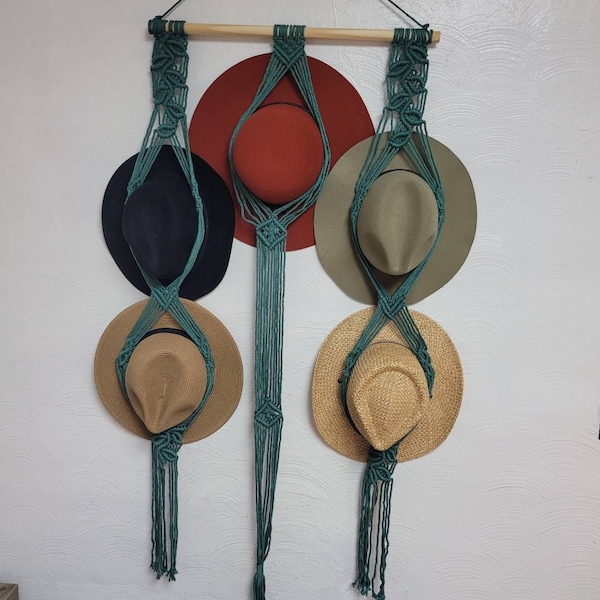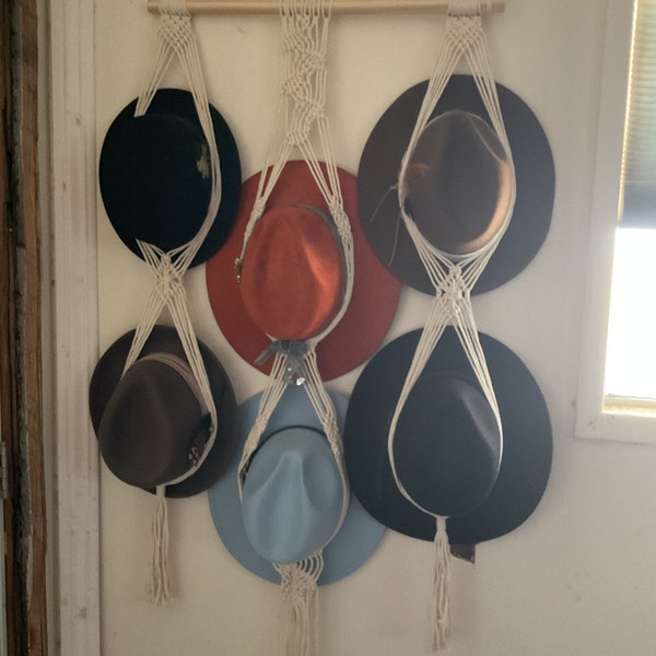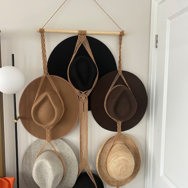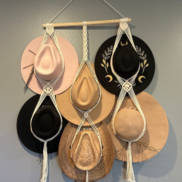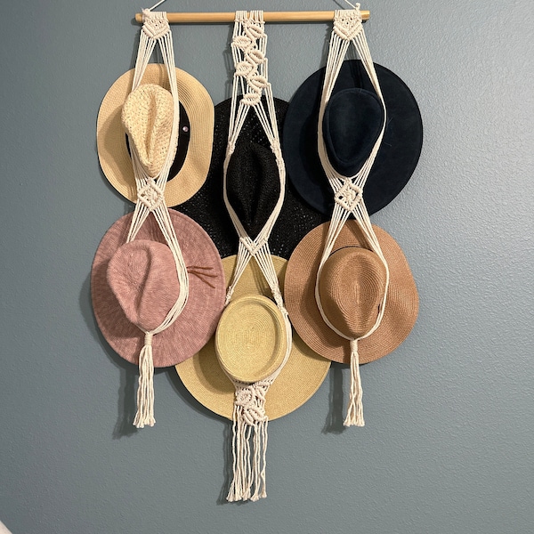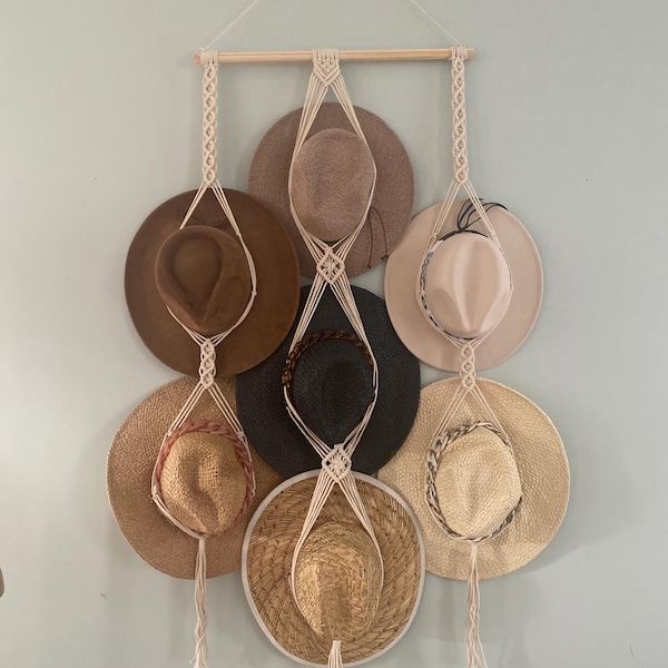 Macrame Hat Wall Display, Handmade Hat Holder, Wall Hanging Cap Rack, Hat Storage, Hat Organizer, Boho Home Decor, New Home Gift For Mom