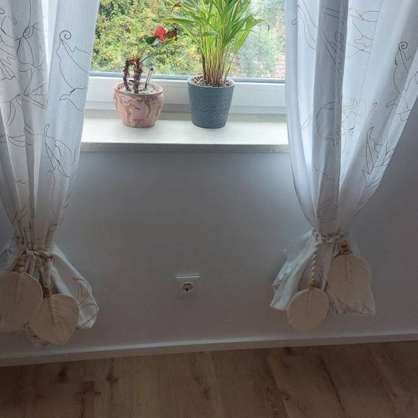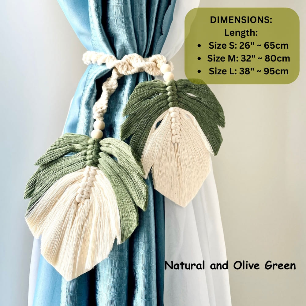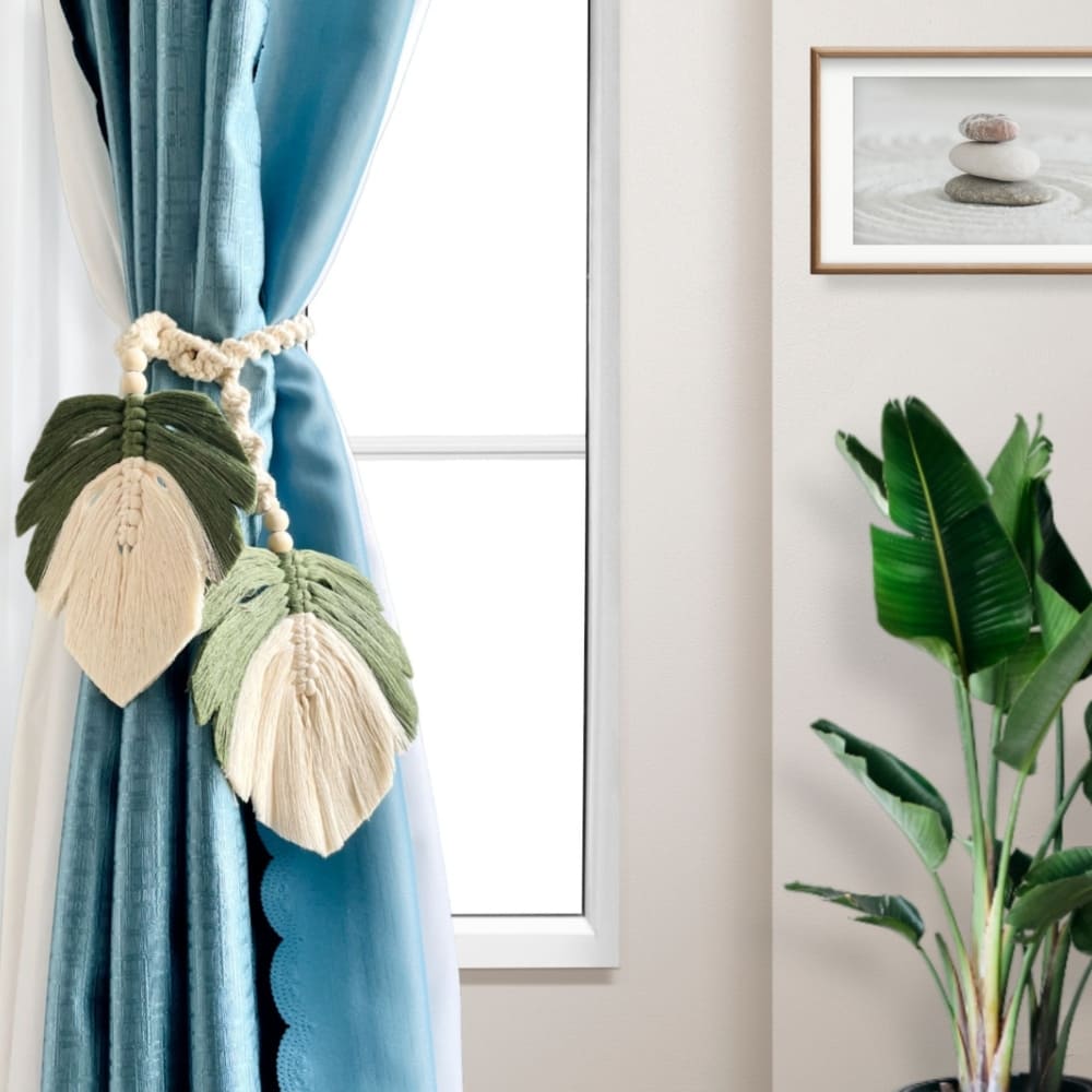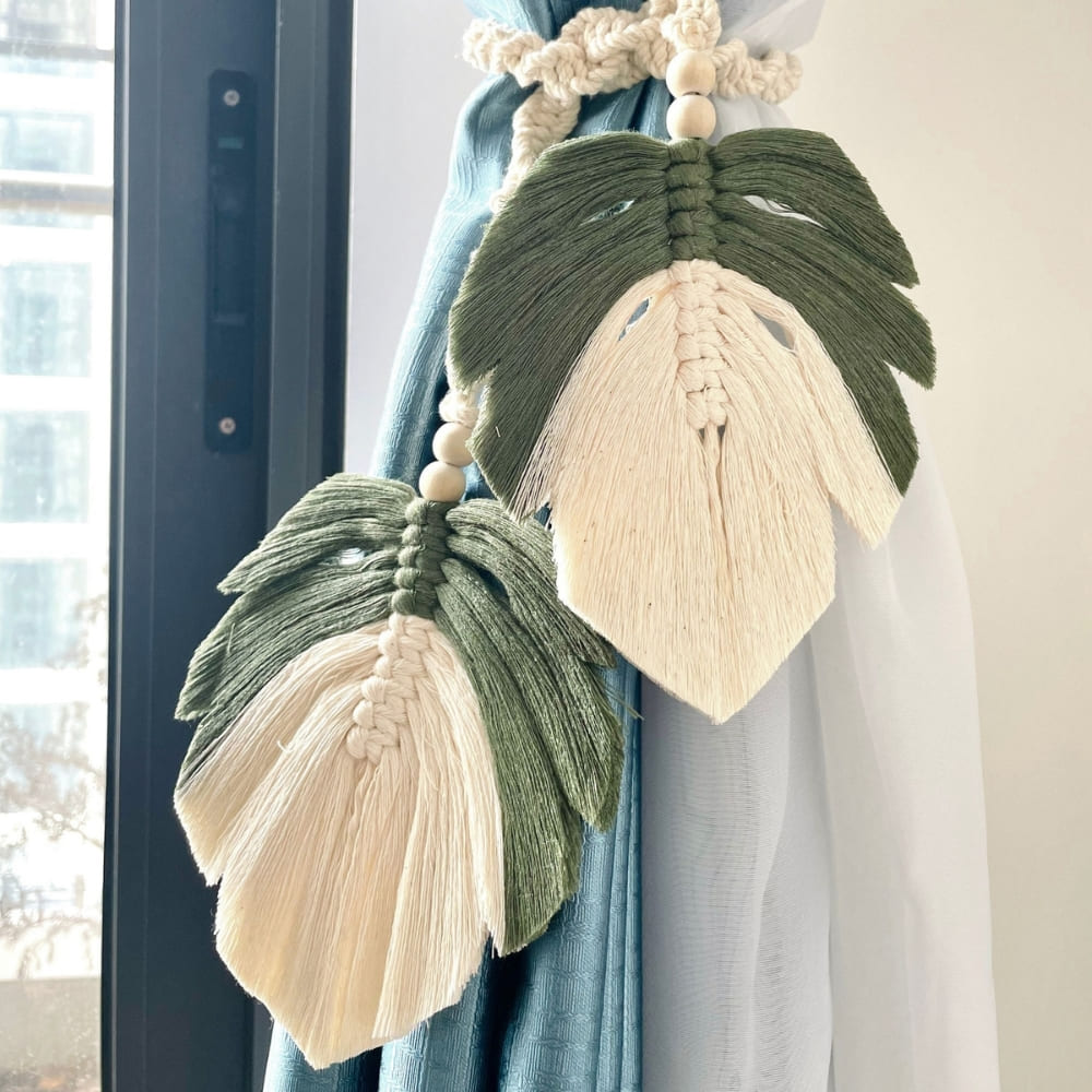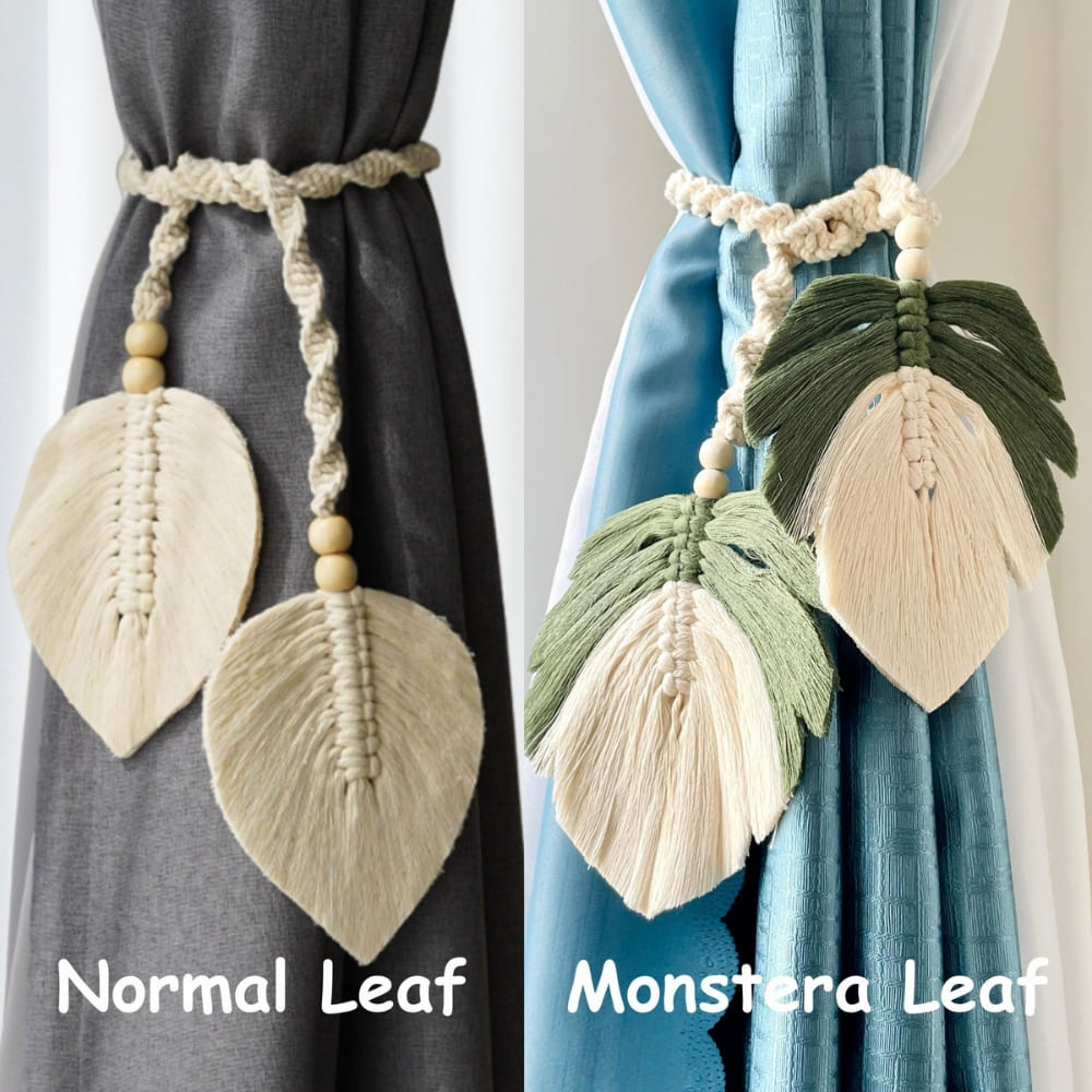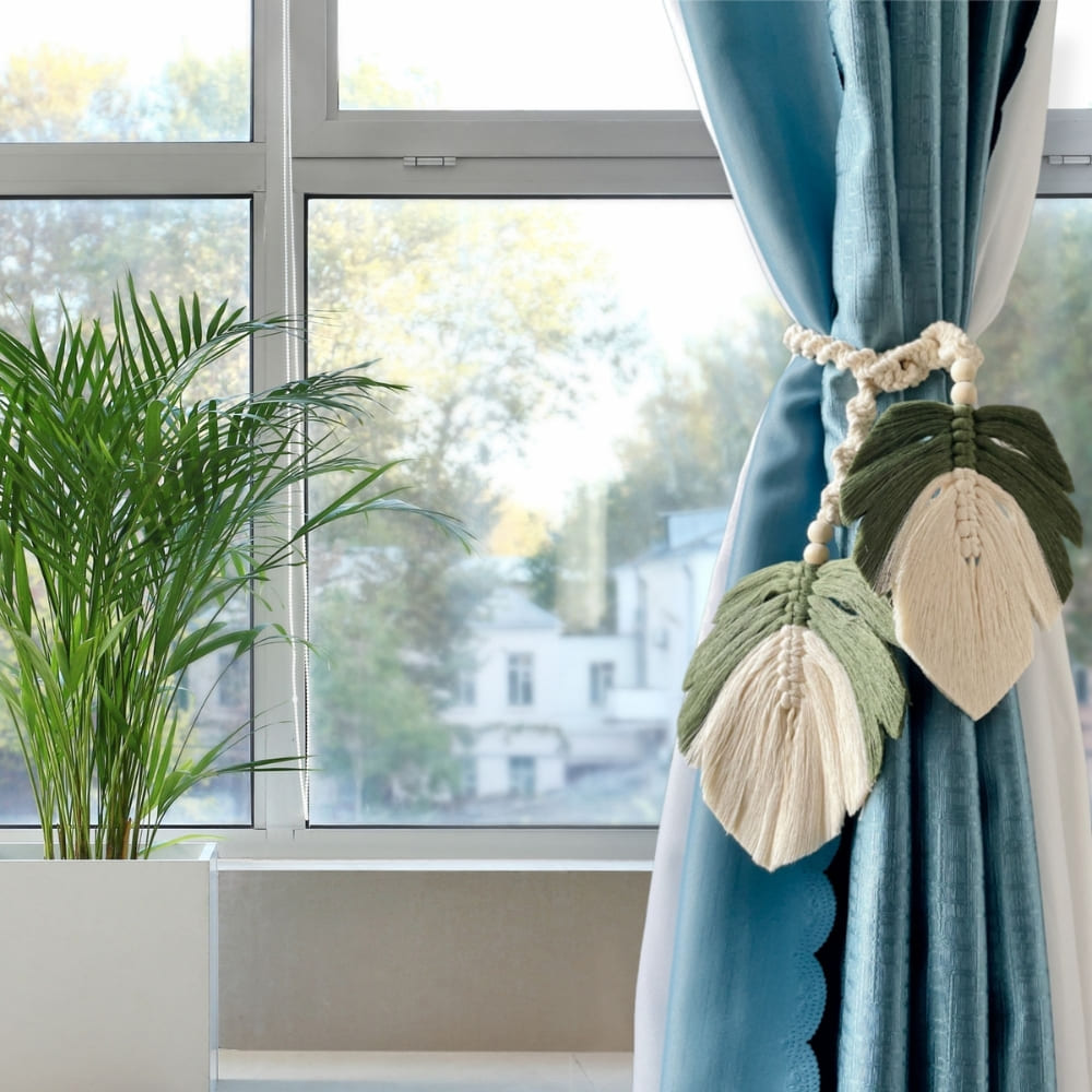 Introducing our elegant Curtain Tie Backs, designed to bring a charming and stylish touch to your home decor. Handcrafted with care, these tie backs feature boho-inspired leaves, adding a cozy farmhouse and Scandinavian vibe to any space. Perfect for your living room, nursery, or even a kid’s shower curtain, these macrame flowers also make a thoughtful Christmas or housewarming gift for plant lovers or as leaf-themed wedding decor.