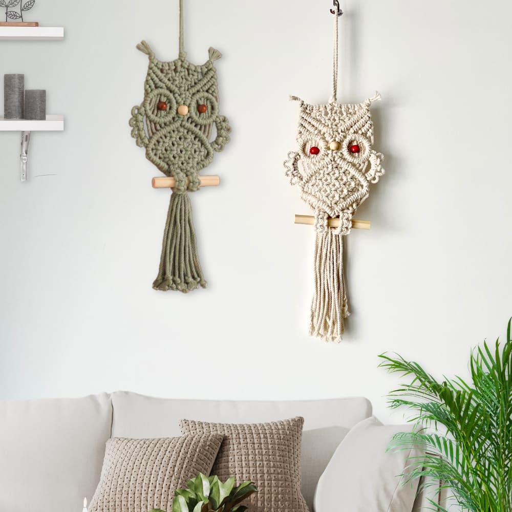 Invite the charm of this “Boho Macrame Owl” into your home, a handmade treasure perfect for animal lovers. This vintage-inspired owl, symbolizing wisdom and mystery, skillfully blends modern macrame craftsmanship with farmhouse decor, making it a beautiful addition to a baby girl’s nursery or any room.